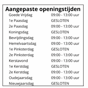 - Zaterdag en zondag van 09.00 uur tot 15.00 uur